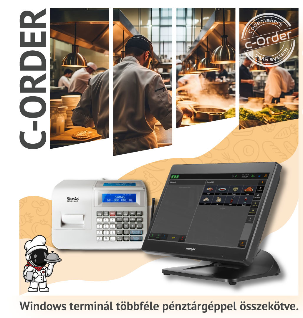 A C-Order Light pénztárgép az NTAK adatszolgáltatás teljesítésére teljes mértékben alkalmas, kezelése rendkívül egyszerű – modern, testreszabható megjelenése pedig az egyedi igényeket is egyaránt kielégíti. Az eszköz külső pénztárgéppel összeköthető, illetve helyben fogyasztás és elviteles ÁFA kezelésre is alkalmas.